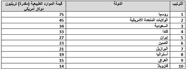 قائمة أغنى 10 دول في العالم من حيث احتياطي الموارد الطبيعية