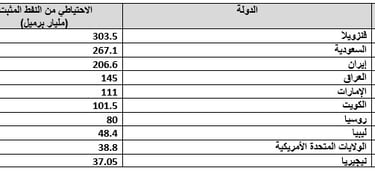 - ملاحظة مهمة: هذه البيانات لا تشمل احتياطيات النفط الصخري، وهو السبب في استثناء كندا من القائمة نظراً لاعتمادها الكبير على النفط الصخري.